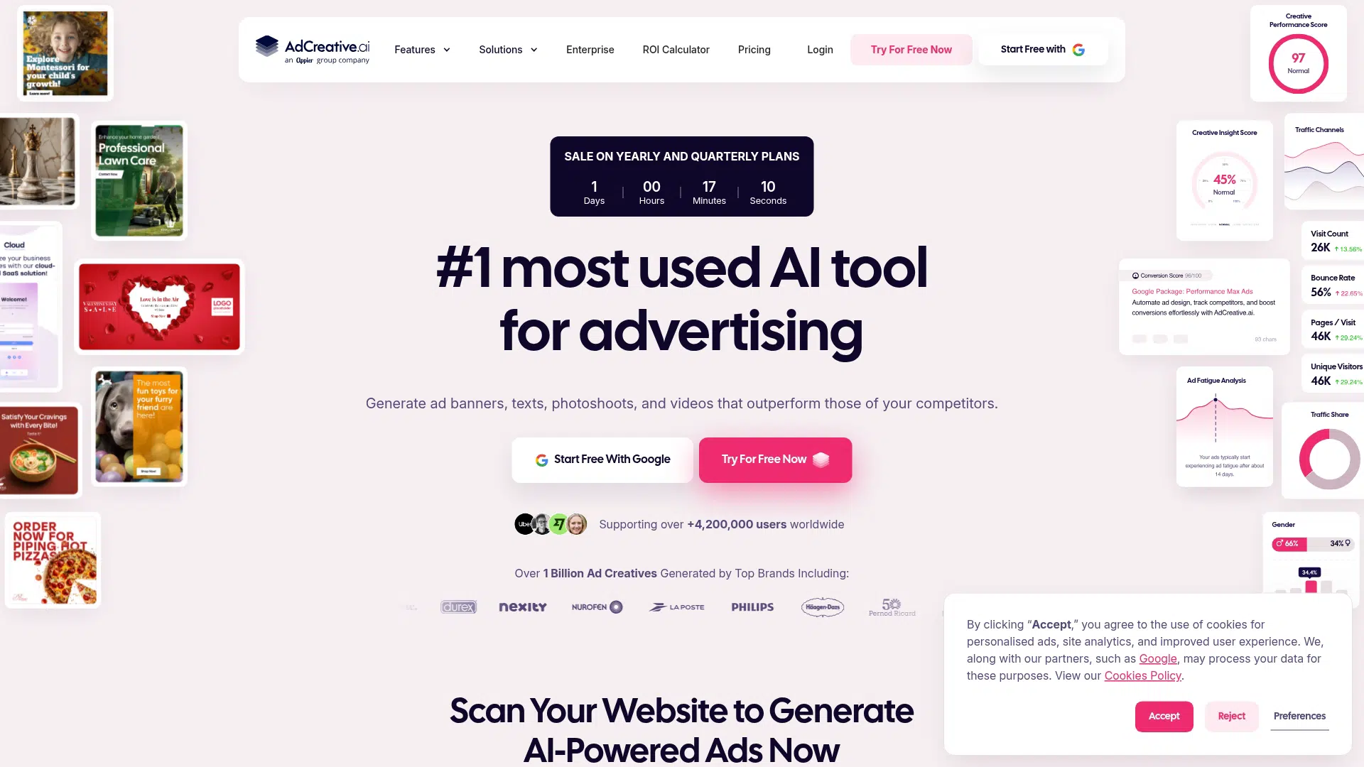 AdCreative.ai is an AI-powered marketing platform that generates high-converting ad creatives, texts, photos, and videos. It offers tools for creative insights, competitor analysis, and performance prediction, helping businesses optimize ad campaigns and boost ROI. Best for small businesses, e-commerce brands, and agencies. Freemium pricing with a 7-day free trial.