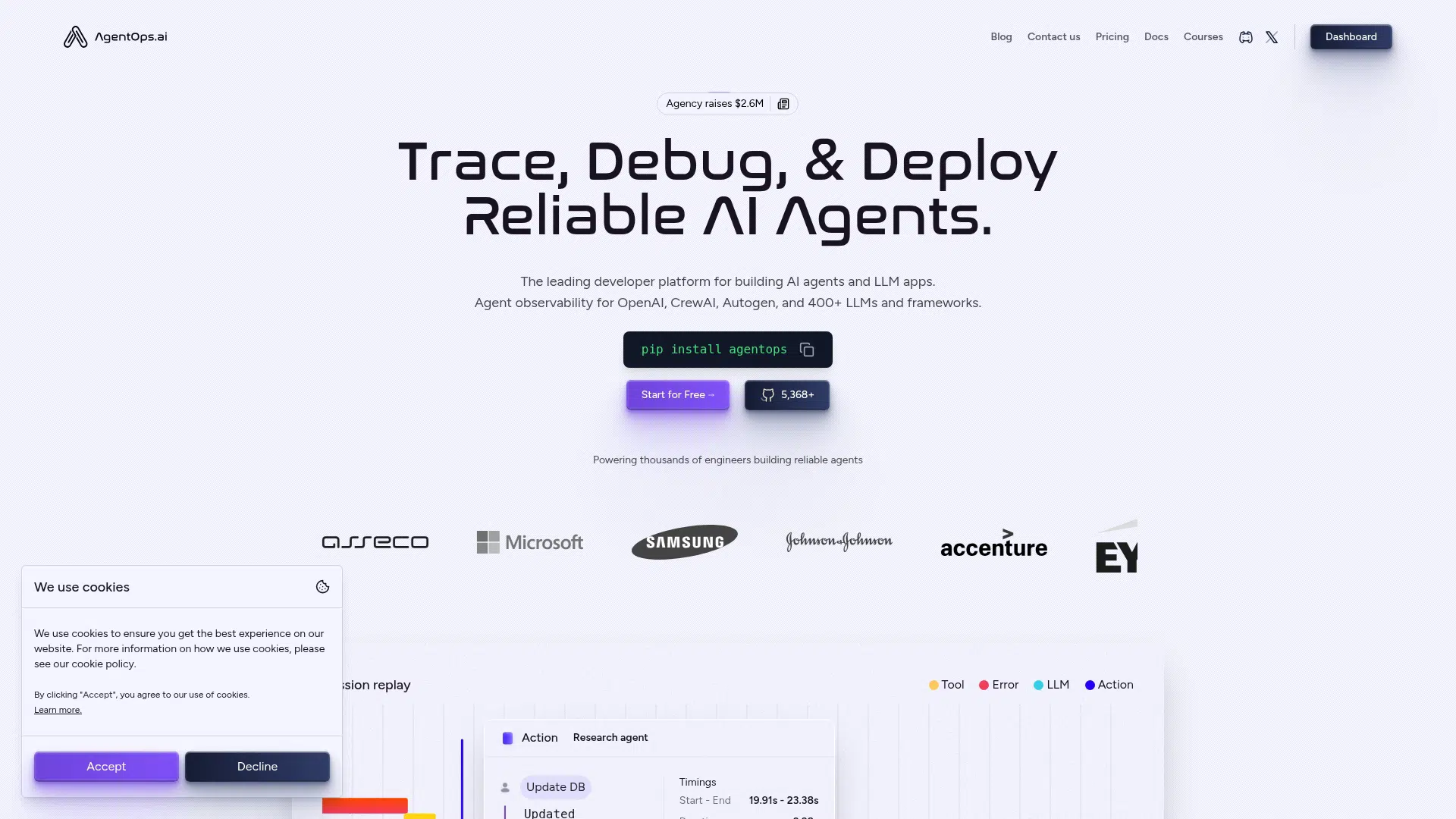 AgentOps is a developer platform for tracing, debugging, and deploying reliable AI agents and LLM applications. It provides visual tracking of LLM calls, tools, and multi-agent interactions, along with cost monitoring and fine-tuning capabilities. Best for developers and engineers building and scaling production AI workflows. It offers a freemium model with a free tier up to 5,000 events.