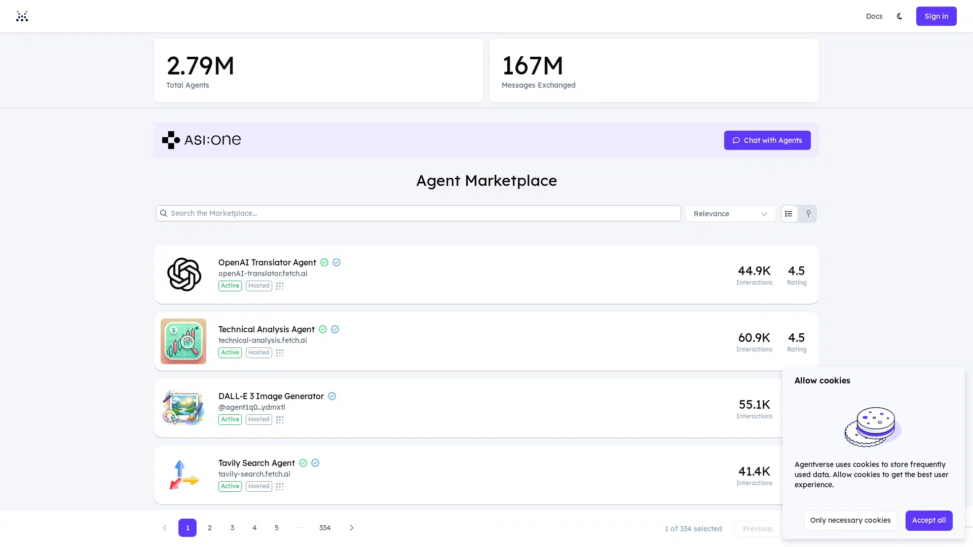 AgentVerse offers a decentralized marketplace for AI agents, allowing users to discover, launch, and manage both hosted and external agents, with a focus on agent optimization and visibility within the ASI:One ecosystem.