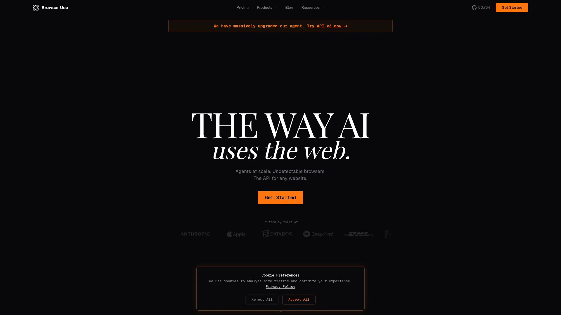 Browser Use is an AI-powered web agent platform that provides scalable, undetectable browser automation, data extraction, and testing. It leverages stealth browsers, CAPTCHA solving, and custom LLMs to execute complex, multi-step tasks autonomously. Best for developers and engineering teams building production AI workflows. Offers a free tier for its cloud platform and an open-source library.