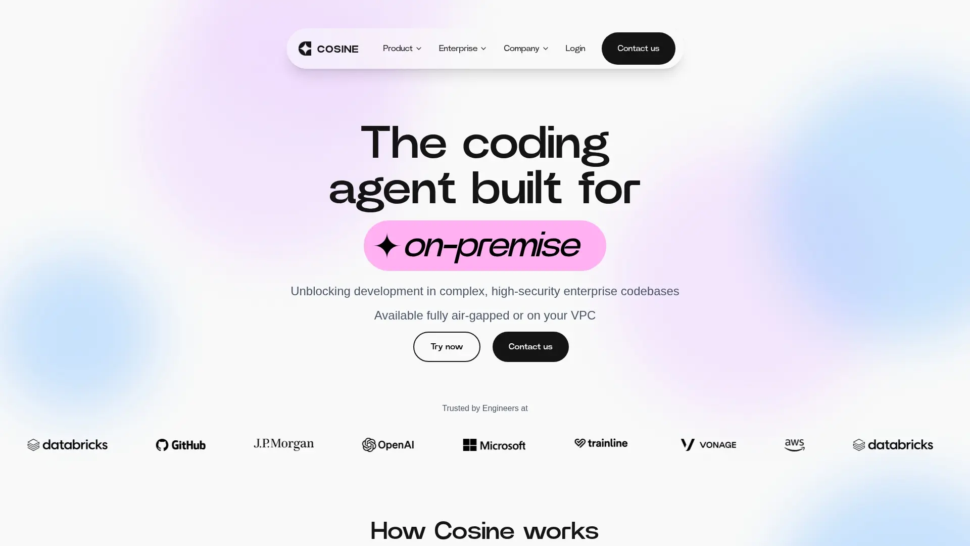 Cosine Genie stands out with its strong focus on on-premise and air-gapped deployments for high-security enterprise codebases, offering custom model fine-tuning on internal codebases and legacy languages.