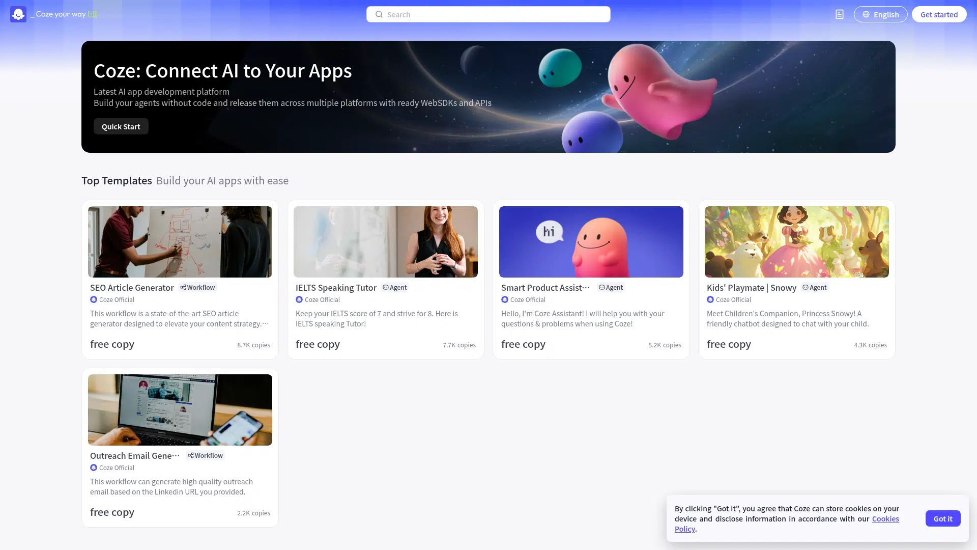 Coze is an open-source AI agent development platform by ByteDance, offering visual, low-code/no-code tools to create, debug, and deploy AI agents and chatbots. It supports multi-modal AI and RAG, simplifying complex workflow orchestration. Best for developers and businesses building custom AI solutions. Freemium pricing available.