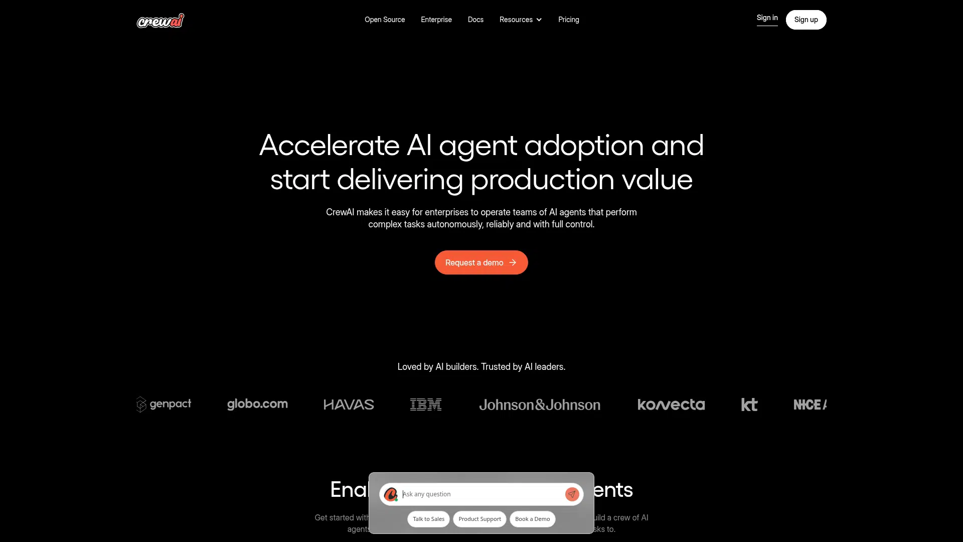 CrewAI AMP is an enterprise-grade platform for building, deploying, and scaling teams of AI agents that perform complex tasks autonomously. It offers both a visual editor and powerful APIs, supporting integrated tools, advanced orchestration, and comprehensive monitoring. Designed for enterprises, it ensures reliable outcomes with features like SOC2 compliance and SSO.