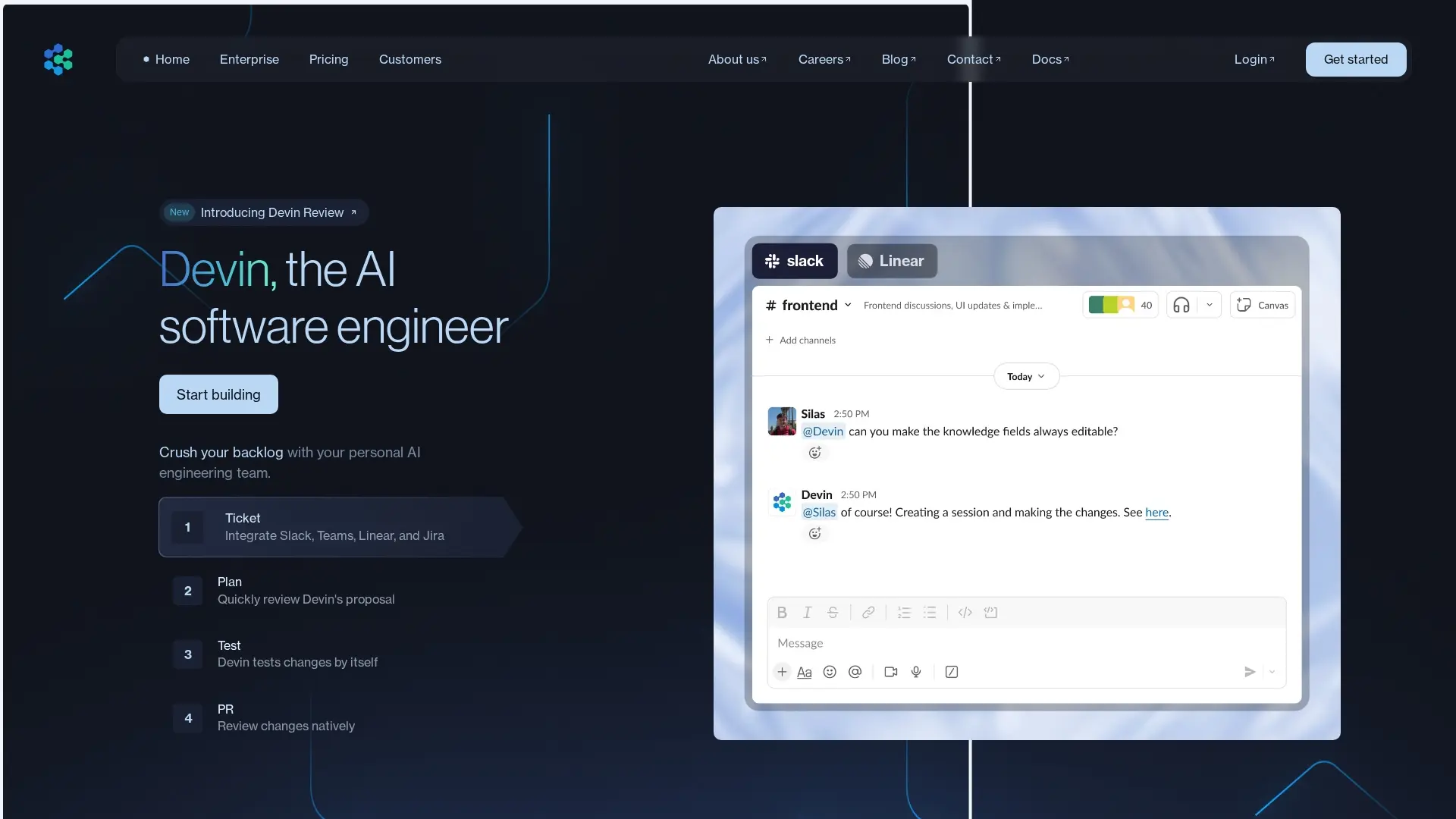Devin is an autonomous AI software engineer that streamlines software development by handling complex tasks like code migrations, bug fixes, and feature implementation. It operates within its own IDE, shell, and browser, learning from your codebase and integrating with tools like GitHub and Slack to deliver significant efficiency gains and cost savings for engineering teams.