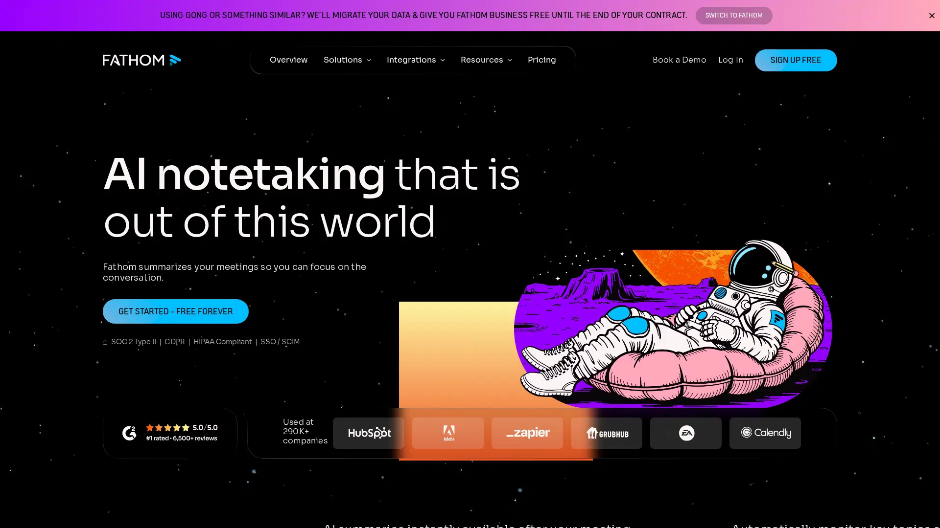 Fathom is an AI notetaker and meeting partner that captures what matters, connects with your favorite tools, and scales with your team. It provides lightning-fast, super accurate AI meeting summaries, word-perfect transcriptions, and AI-generated action items. Free for individuals, with paid plans for advanced features and teams.