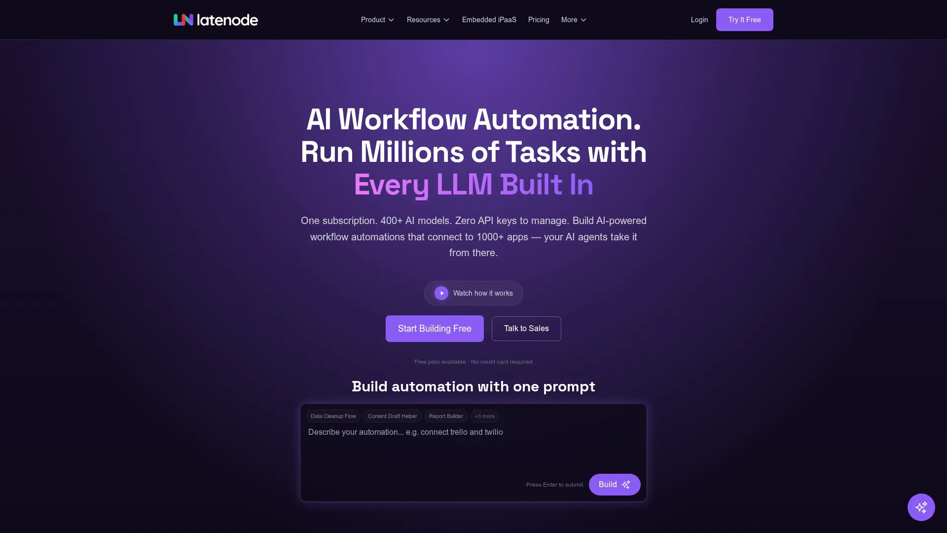 Automate workflows with AI agents, 400+ models, and 1000+ app integrations