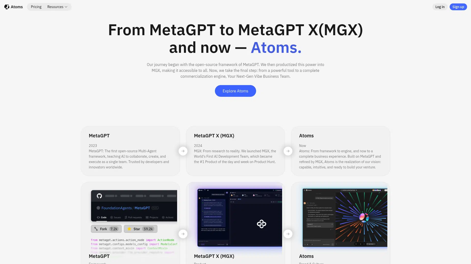 MetaGPT is an open-source multi-agent framework that enables AI agents to collaborate, plan, and execute complex software development projects from a single prompt. It redefines AI agent collaboration by allowing agents to think and build together like a real team, from design to deployment. Trusted by developers for autonomous creation.