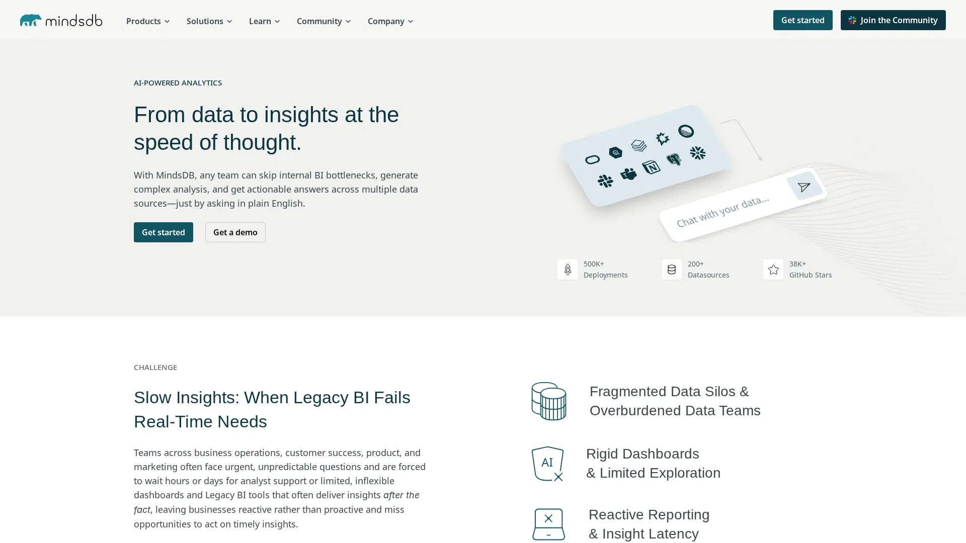 MindsDB is an open-source AI data solution that transforms raw data into actionable insights using natural language. It connects to over 200 structured and unstructured data sources, enabling real-time analytics and intelligent querying. MindsDB empowers business teams to make data-driven decisions without complex data engineering, offering both cloud and self-hosted deployments.