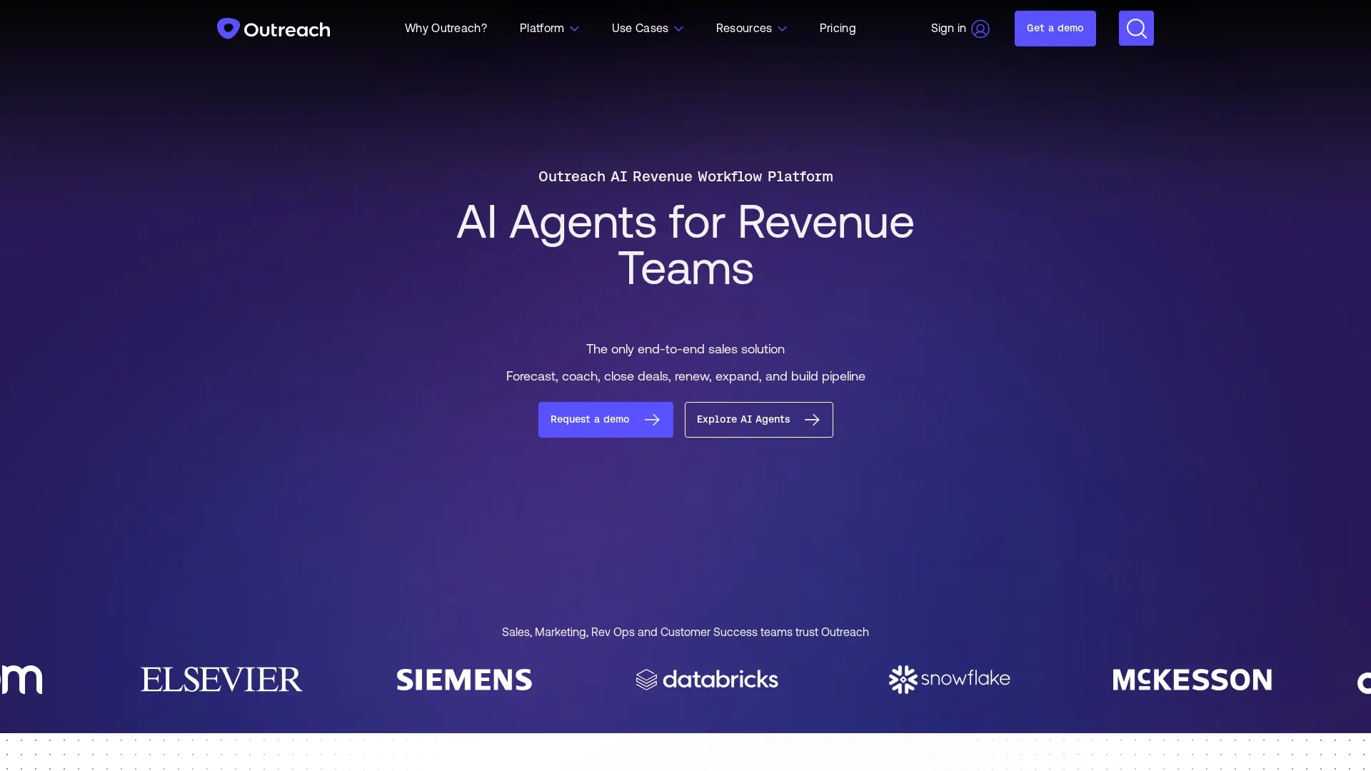 Outreach AI is an end-to-end AI Revenue Workflow Platform designed to empower sales, marketing, revenue operations, and customer success teams. It leverages AI agents to streamline sales processes, from prospecting and engagement to deal management, forecasting, coaching, and customer retention, helping organizations drive predictable revenue growth.