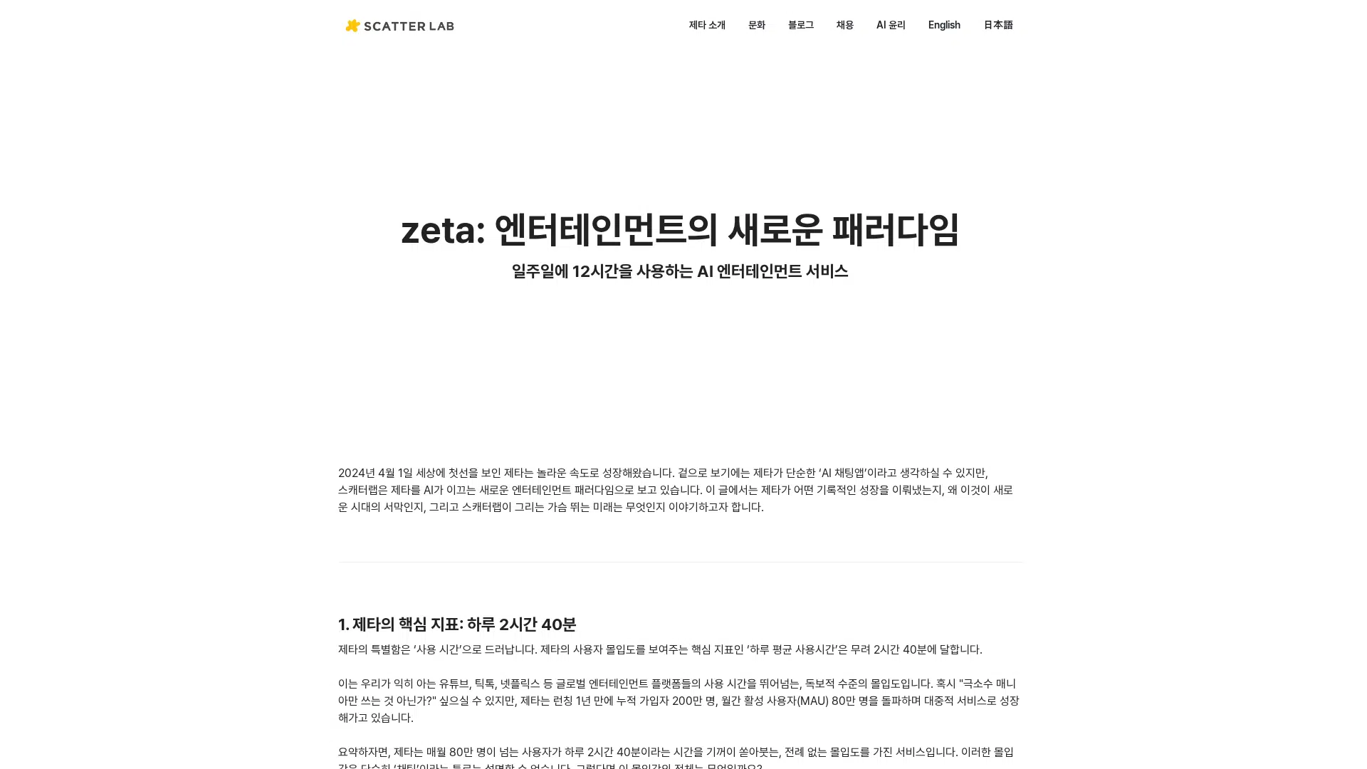 ScatterLab Chat Agent (Zeta) is an AI-native entertainment service that redefines interactive storytelling. It allows users to co-create unique, real-time narratives with an AI, offering a deeply personalized and unpredictable experience. Zeta leverages its proprietary Spotwrite-1 AI model, optimized for fun, to deliver unparalleled user engagement.