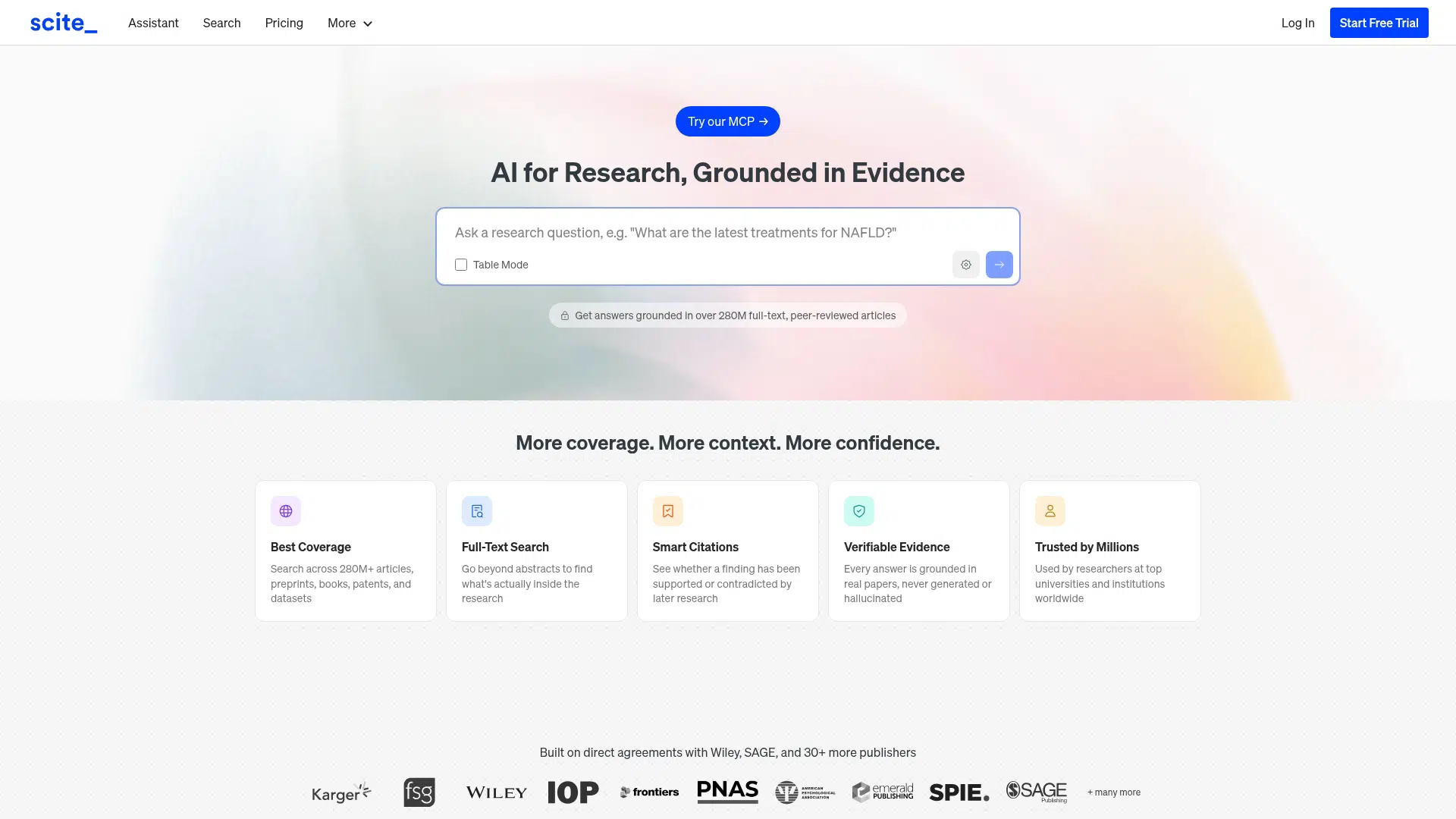 Scite Assistant is an AI-powered platform that helps researchers discover and evaluate scientific literature through Smart Citations, showing whether studies support or contradict a claim. It offers full-text search across 280M+ sources and classifies 1.6B+ citations. Trusted by millions of researchers, it provides verifiable insights.
