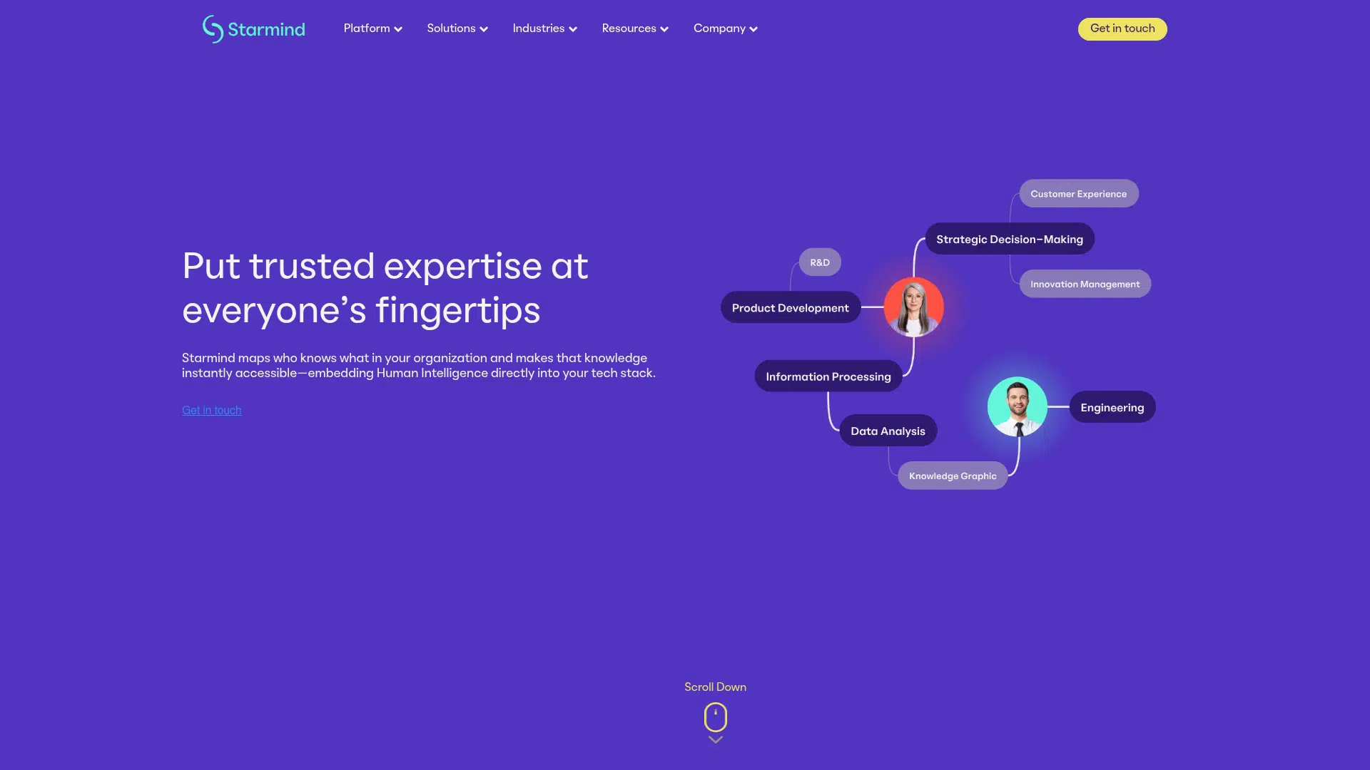 Starmind is an AI-powered knowledge platform that maps and makes accessible the collective expertise within an organization. It automatically identifies who knows what by analyzing daily work interactions and integrates seamlessly with existing enterprise tools like Microsoft Teams and Jira. Designed for large enterprises, Starmind helps reduce search time, increase knowledge retention, and foster collaboration.