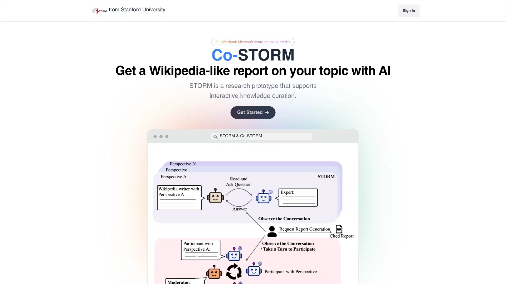 STORM is a research prototype from Stanford University that supports interactive knowledge curation. It generates Wikipedia-like reports with citations by researching a given topic. This LLM-powered system is designed for deep research and report generation, available for free as an open-source project.