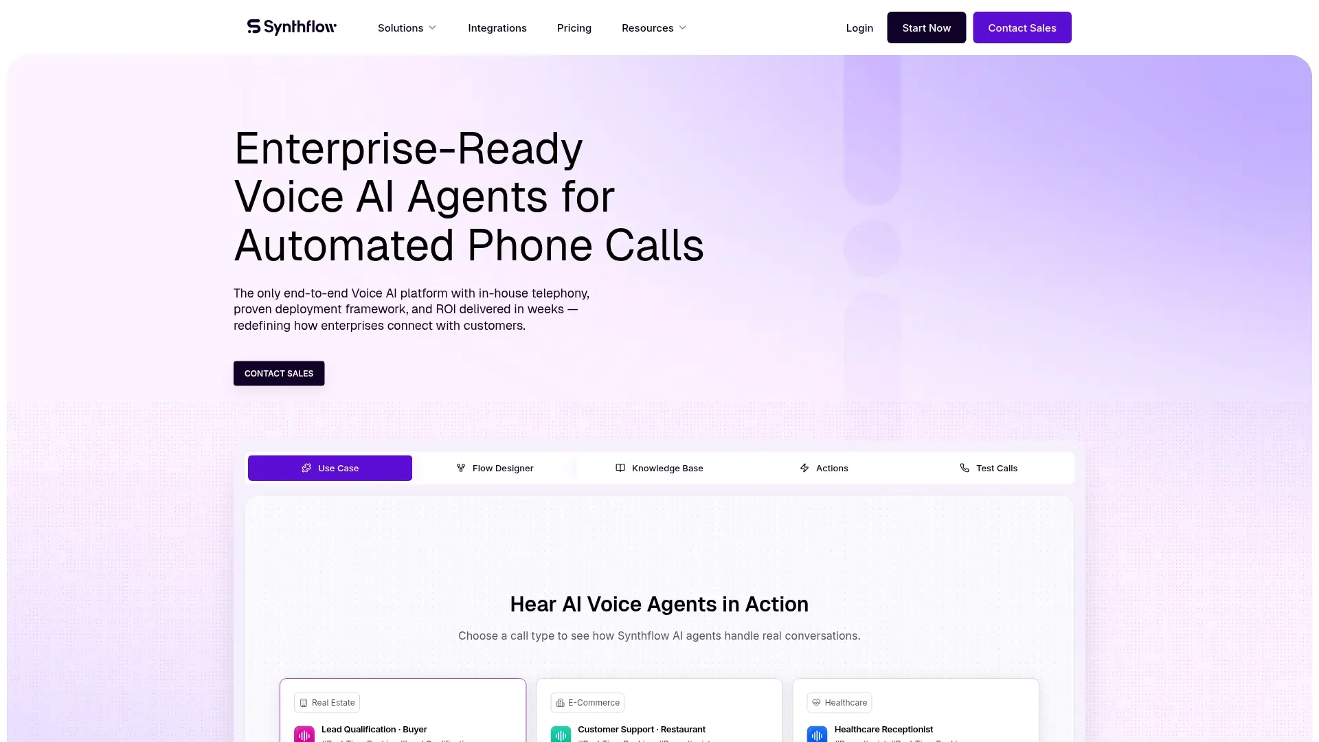 Synthflow AI is an end-to-end Voice AI platform designed for enterprises to automate phone calls using human-like AI voice agents. It handles inbound and outbound calls, offering features like appointment booking, lead qualification, customer support, and call routing. With its no-code builder, in-house telephony, and deep analytics, Synthflow helps businesses scale customer service, reduce costs, and improve customer experience across various industries.