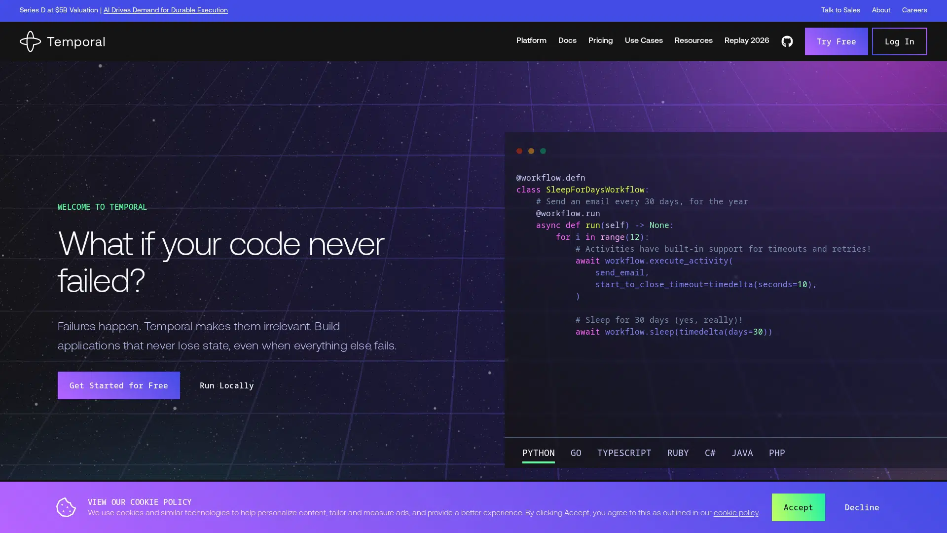 Temporal AI is an open-source durable execution platform for developers to build and orchestrate fault-tolerant applications and AI agents. It automatically captures application state, handles retries, and manages long-running processes. Available as a self-hosted solution or a managed cloud service with pay-as-you-go pricing.