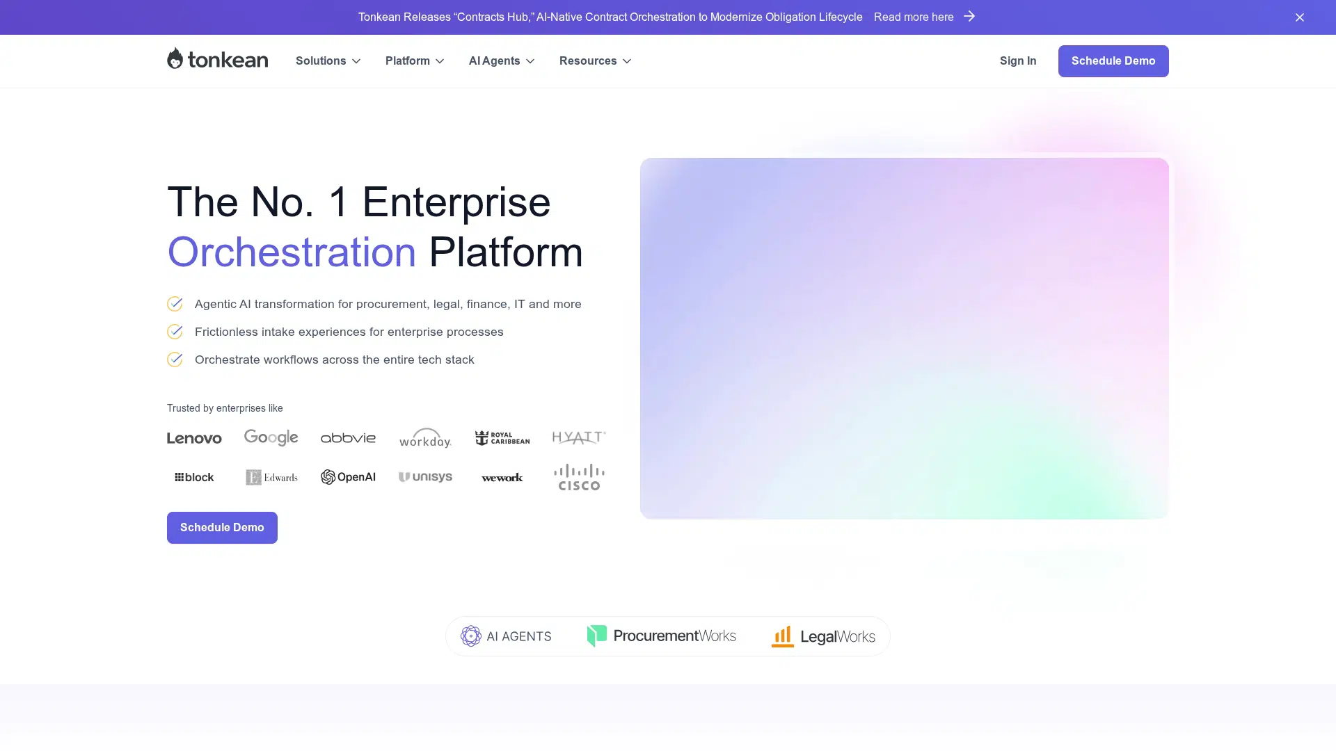 Tonkean Agent is an AI-powered enterprise orchestration platform that automates complex, multi-step workflows across departments like legal, procurement, and HR. It features an AI Front Door for intelligent intake, a no-code process builder, and integrates with over 250 applications. Best for large enterprises seeking to boost compliance, accelerate operations, and deploy AI agents with robust governance. Pricing is custom and enterprise-focused.