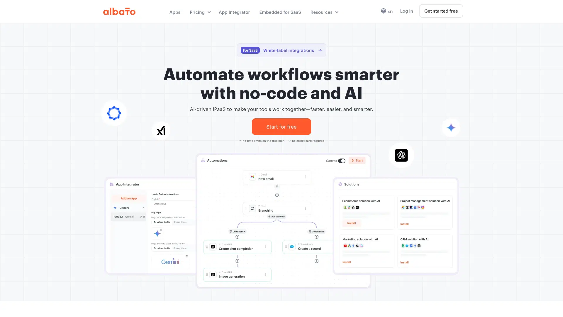 Albato stands out by integrating AI capabilities directly into its no-code automation workflows, allowing users to perform tasks like rewriting product descriptions or analyzing sentiment within their automations. It also offers white-label embedded integrations for SaaS products, saving development time for native integrations.