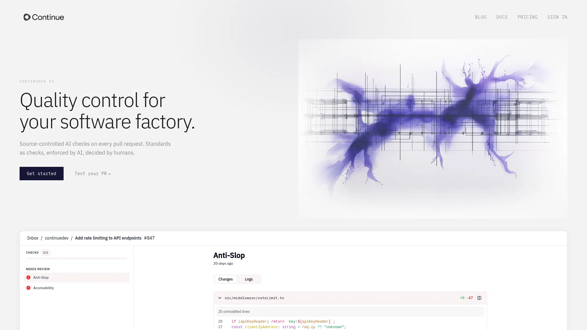 Continue is an AI-powered platform that enforces engineering standards on every pull request through source-controlled AI checks. It runs customizable markdown-defined checks as native GitHub status checks, providing suggested fixes for code that misses the mark. Designed for development teams to automate code review and maintain consistency.