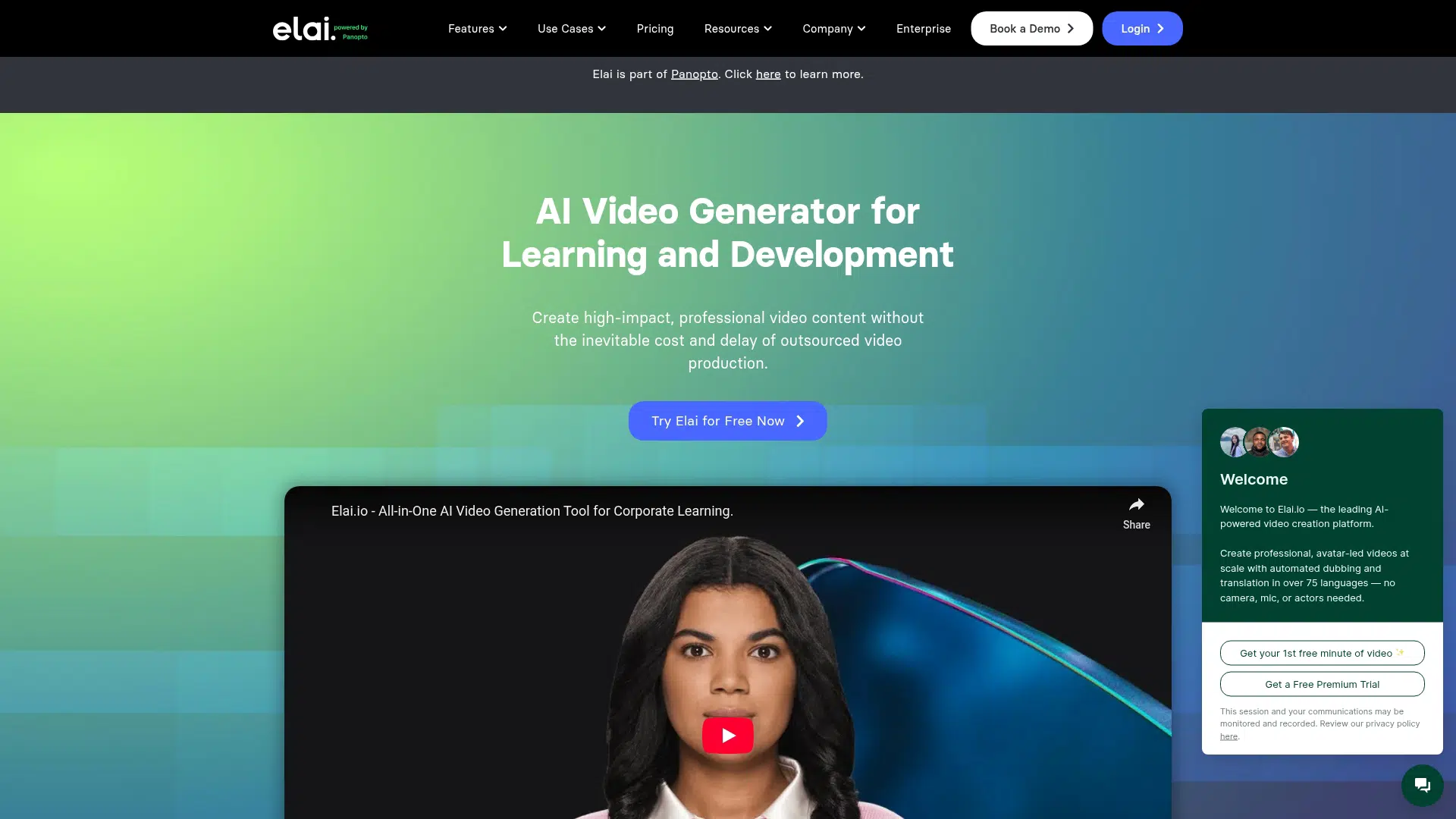 Elai.io is an AI video generator that creates professional videos from text, URLs, or PPTX using AI avatars and voiceovers. It features multilingual voice cloning, automated translations, and interactive elements for engaging content. Best for businesses and L&D professionals needing scalable video production. Freemium with paid plans from $29/month.