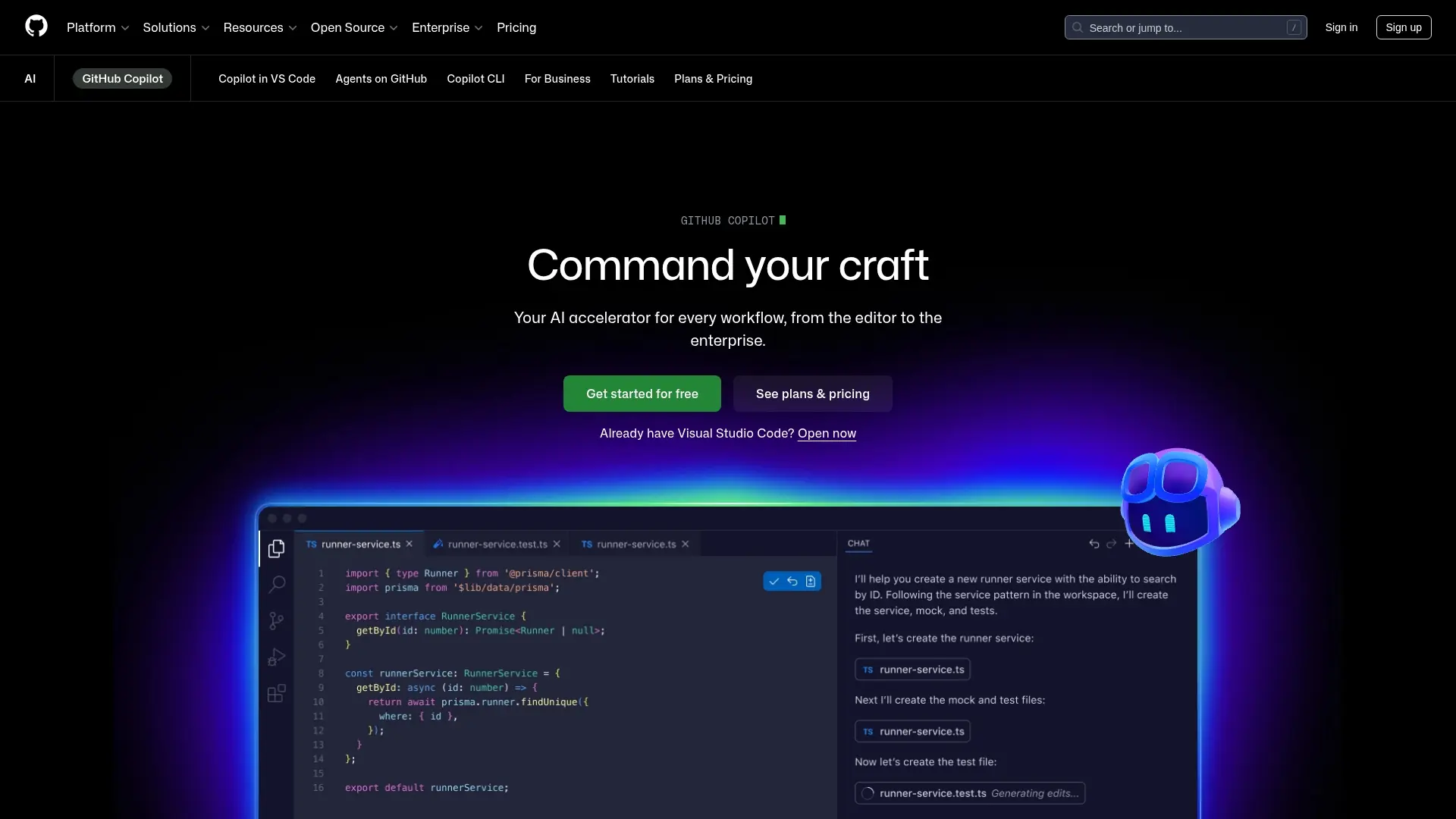 GitHub Copilot is an AI pair programmer that helps you write code faster and with fewer errors. It suggests code snippets, entire functions, and even tests, right within your editor.