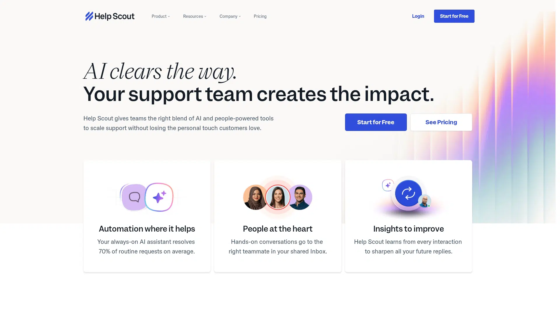 Help Scout AI uniquely combines an always-on AI assistant that resolves up to 70% of routine requests with a shared inbox designed for human-powered, personalized conversations, ensuring no customer feels like a ticket number.