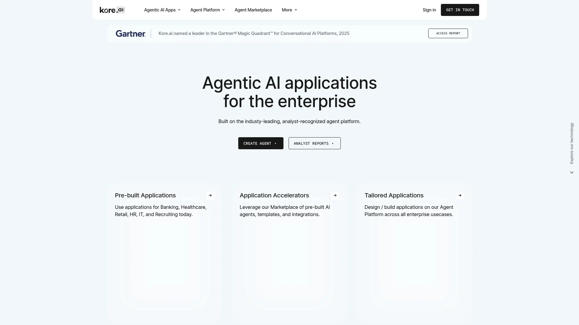 Kore.ai provides an industry-leading agent platform for building and deploying agentic AI applications across the enterprise. It offers pre-built solutions for customer service, employee productivity, and process automation, enabling organizations to achieve faster business outcomes. Designed for global enterprises, Kore.ai integrates with existing systems and offers extensive customization options.