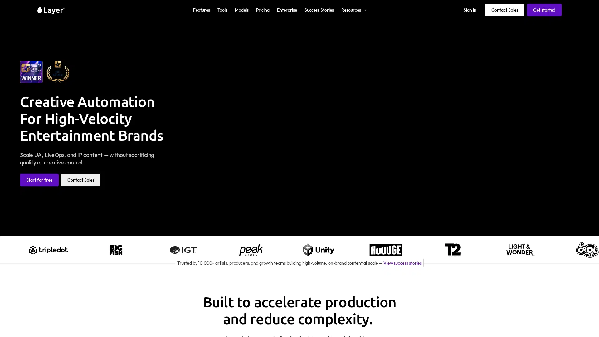 Layer AI is a creative automation platform for game studios and entertainment brands that unifies leading generative AI models. It helps teams generate and edit 2D, 3D, video, and audio assets at scale, accelerating production and ensuring brand consistency. Best for professional artists, designers, and producers in the gaming industry. It offers usage-based pricing with a free starting option.