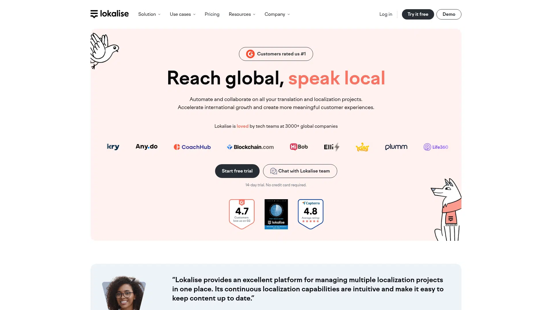 Lokalise AI is a translation management system that streamlines localization for web, mobile, and digital content using AI and automation. It offers features like AI translation, workflow automation, and extensive integrations for developers, product managers, and localization teams. Best for scaling global products, it provides a 14-day free trial and paid plans starting from $144/month.