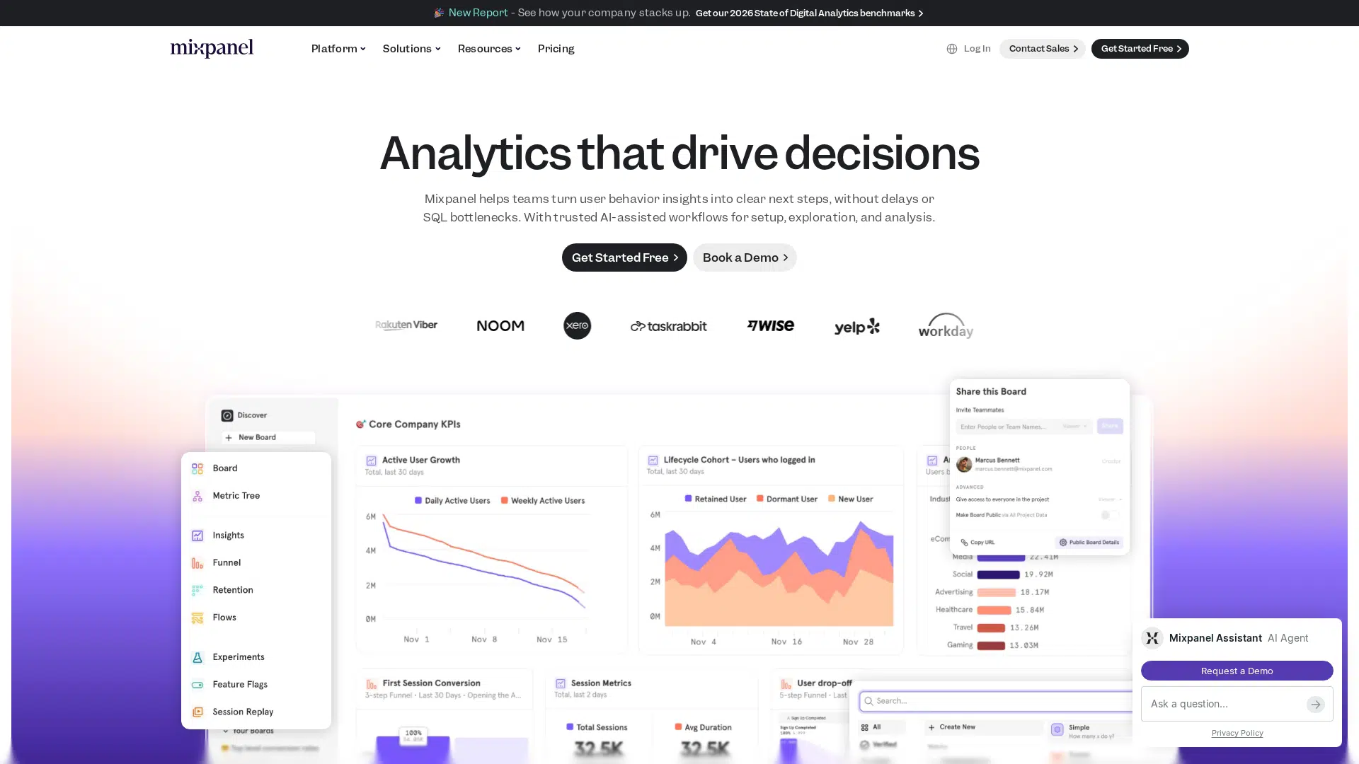 Mixpanel is an AI-powered product analytics platform for teams to understand user behavior and drive growth. It offers real-time insights, funnel analysis, and session replay, all with AI-assisted workflows. Free to start; Growth plan from $0.