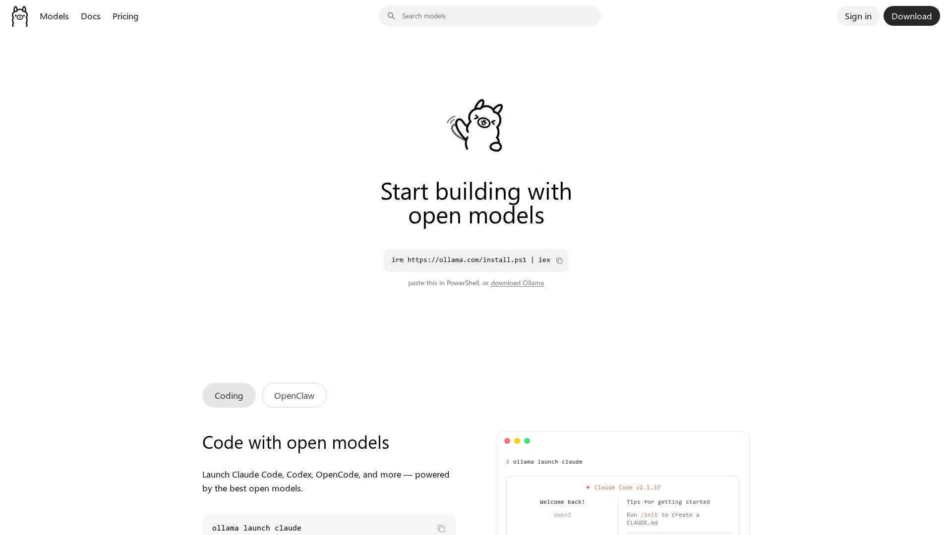 Ollama is a platform for running large language models locally on macOS, Windows, or Linux, or accessing them via cloud infrastructure. It enables developers to code with open models, automate tasks, and integrate LLMs into various applications and agents. Ollama offers a free tier for local usage and paid plans for enhanced cloud model access and private model features.