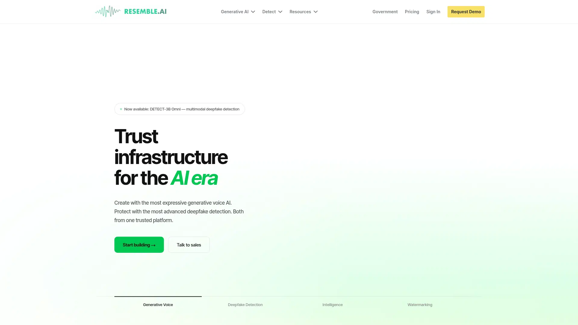Resemble AI uniquely combines ultra-realistic generative voice AI with advanced multimodal deepfake detection and invisible watermarking, all available on-premise for maximum security and data control. Its open-source Chatterbox model offers zero-shot voice cloning with built-in watermarking.
