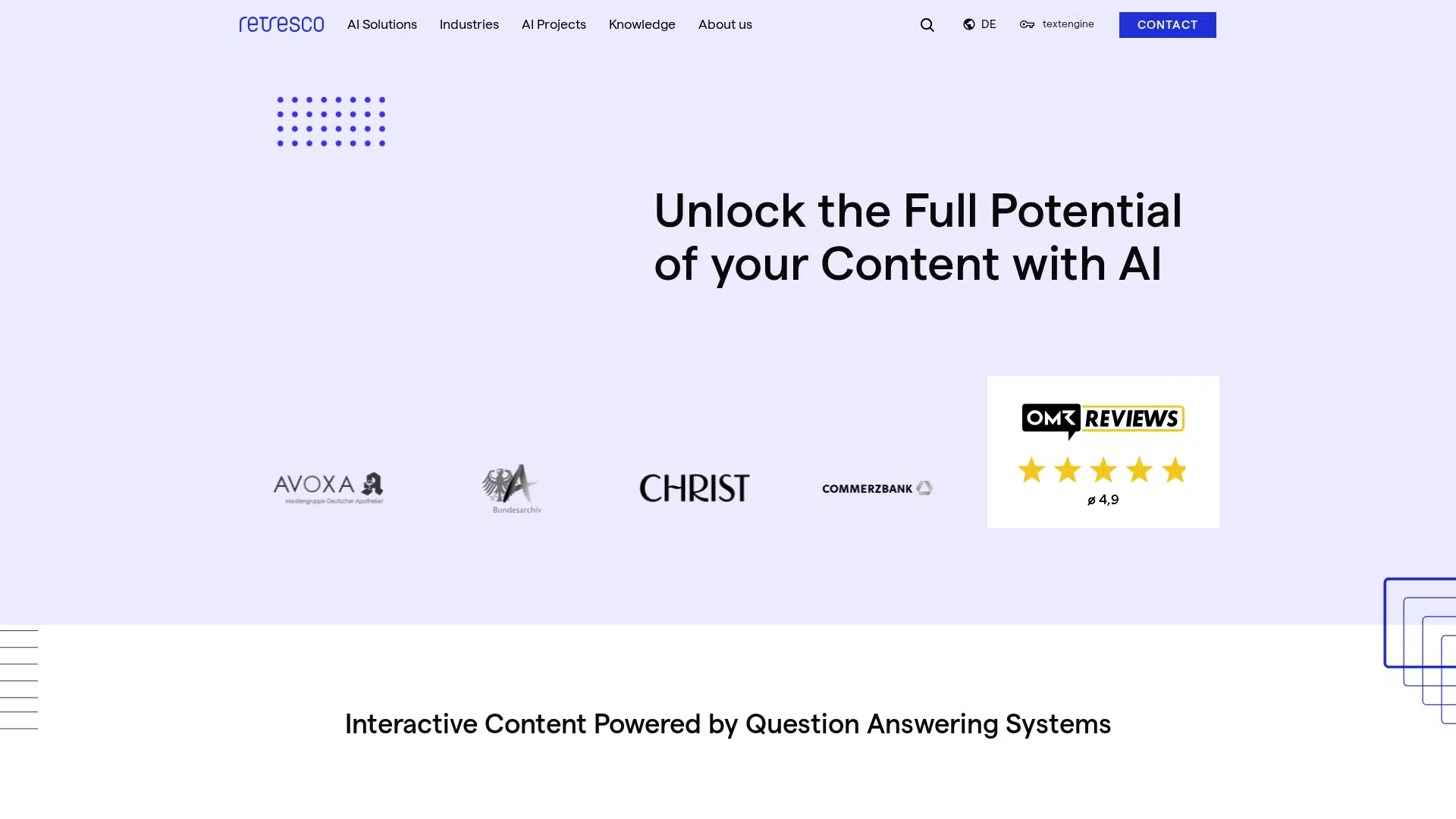 Retresco's unique approach combines semantic retrieval, neural search, and generative AI to deliver precise, context-based answers from large datasets, enabling interactive content experiences and efficient content reuse.