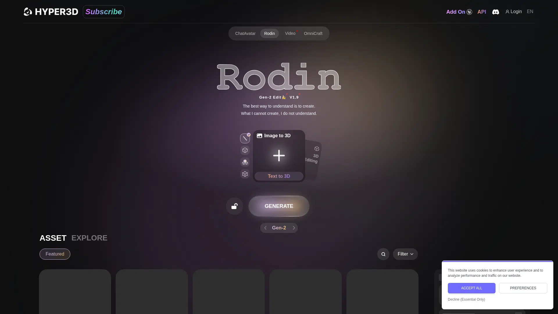 Rodin AI is an advanced AI 3D model generator that transforms text or images into high-quality 3D assets. It features various generation modes for speed and detail, comprehensive 3D editing tools, and plugins for popular DCC software. Best for product designers, engineers, and 3D artists needing rapid prototyping and asset creation. Freemium pricing with a free trial and paid tiers.