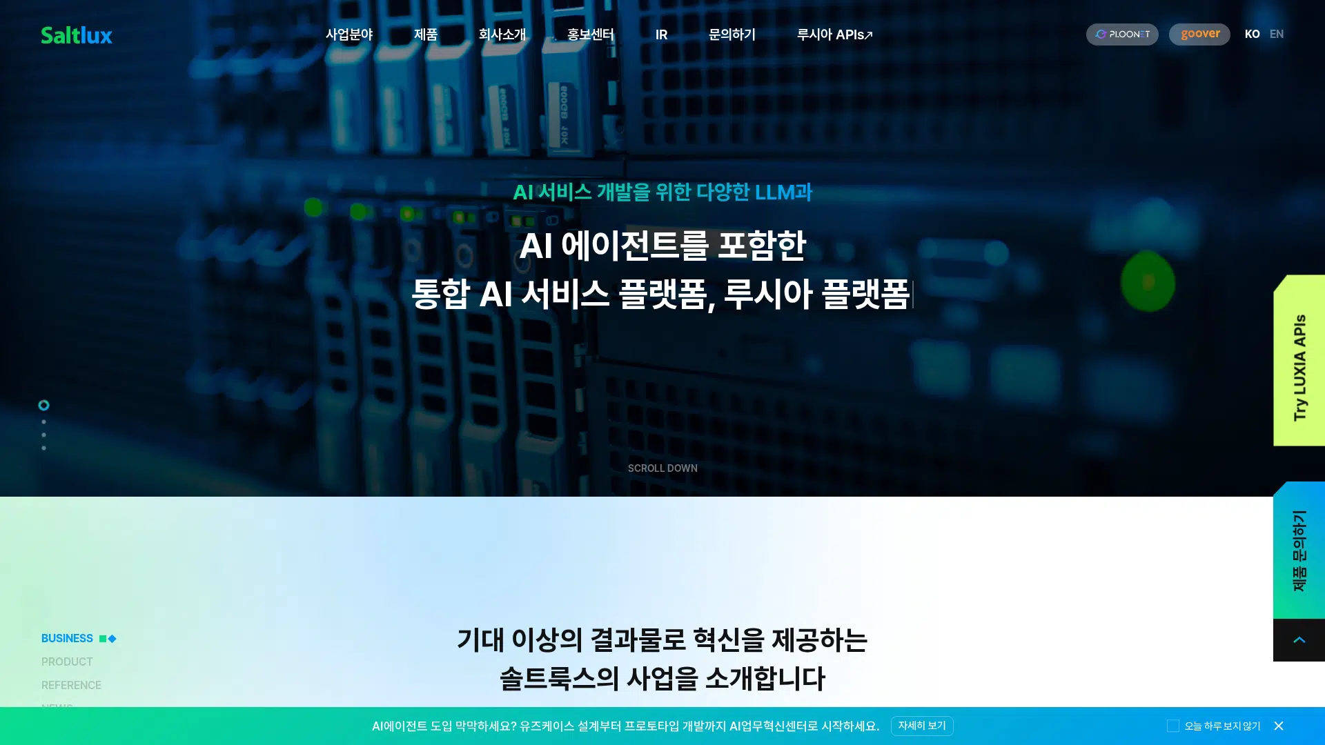 Saltlux offers hardware-integrated LLM appliances (LUXIA-ON) for enhanced security and a comprehensive AI service platform (LUXIA Platform) with diverse AI models and agents for custom development.