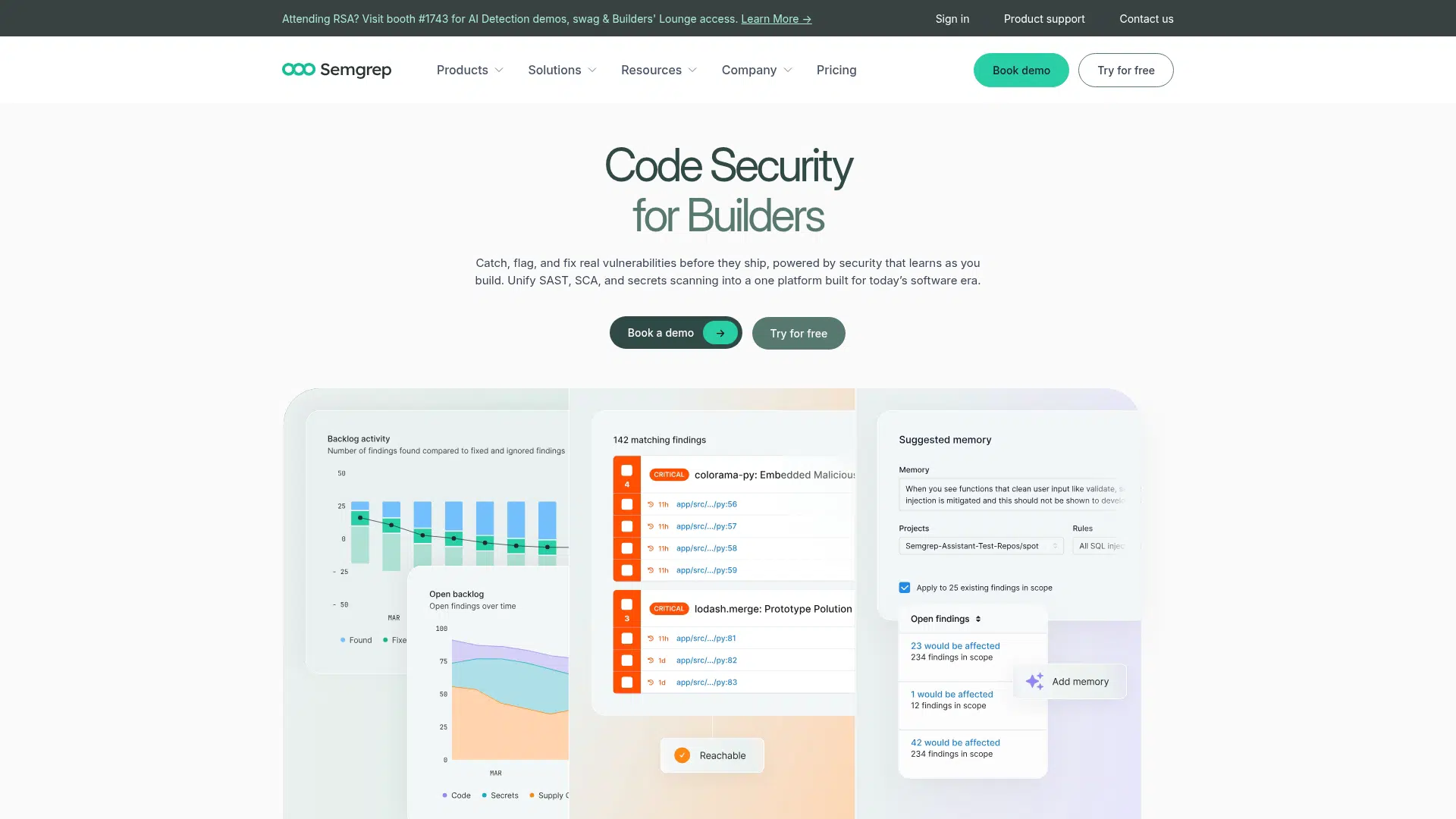 Semgrep unifies SAST, SCA, and secrets scanning into a single platform, leveraging multimodal AI detection and 'AI Memories' to learn code context, eliminate false positives, and prioritize reachable vulnerabilities, validated by 95% of security reviewers.