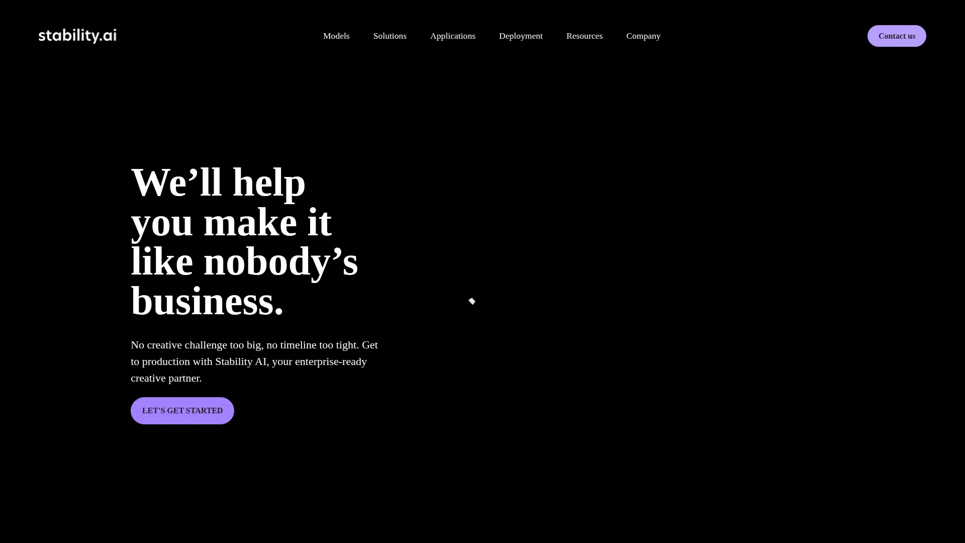 Stability AI provides a suite of multimodal generative AI models (image, video, audio, 3D) with flexible deployment options including self-hosted licenses, a platform API, and cloud integrations, allowing for deep customization and control over brand-specific outputs.