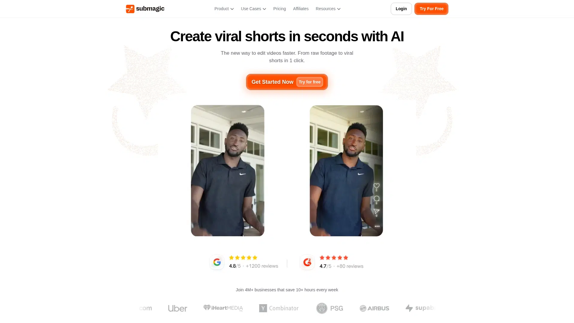 Create viral shorts in seconds with AI, from raw footage to polished videos.
