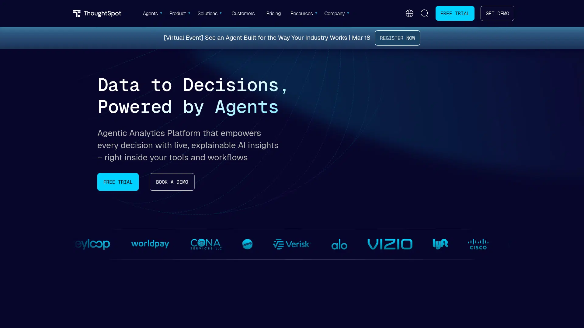 ThoughtSpot is an Agentic Analytics platform that empowers every decision with live, explainable AI insights. It offers natural language search, AI-augmented dashboards, and embedded analytics. Best for business, data, and product leaders looking to automate analytics workflows. Free trial available.
