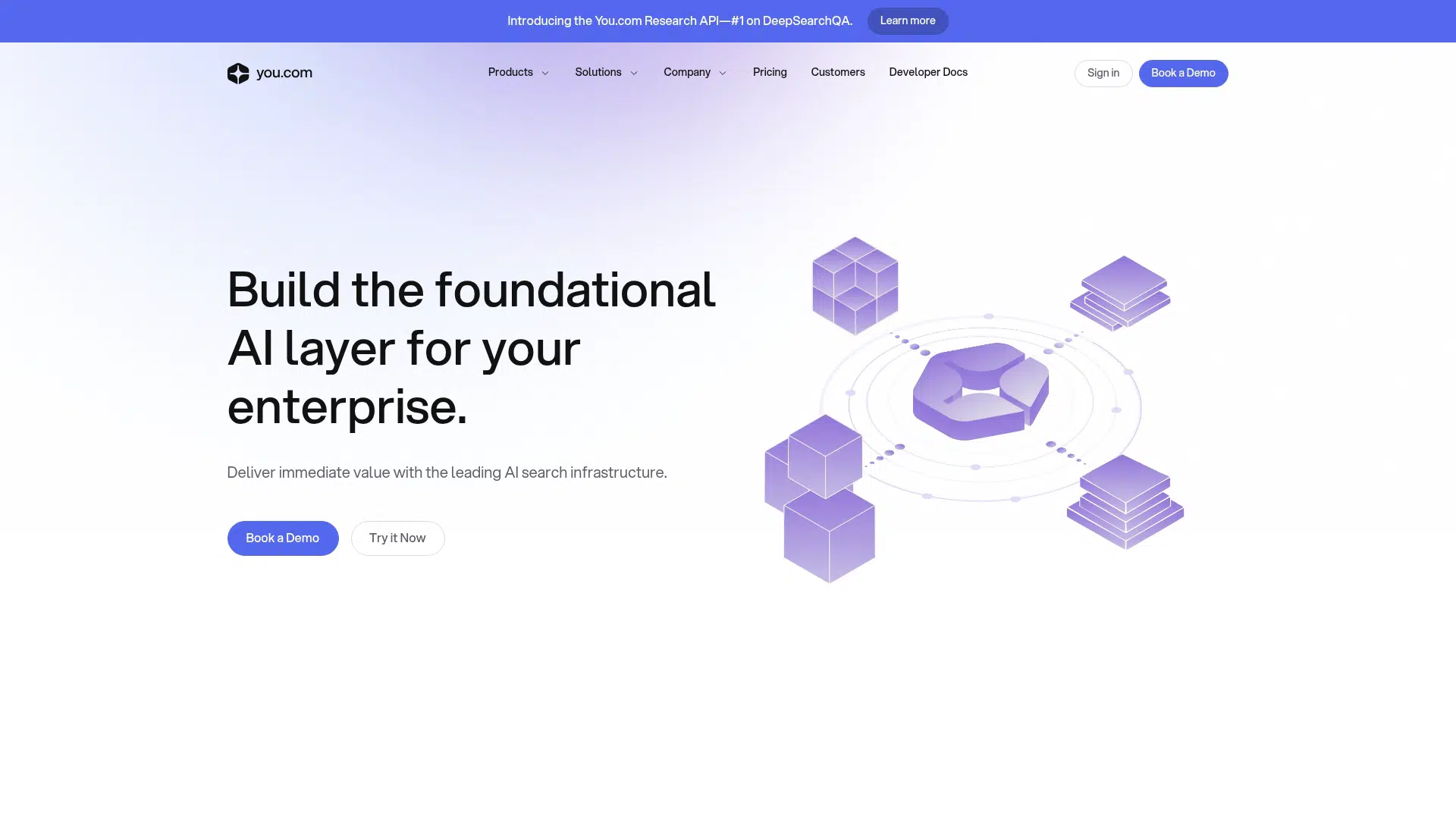 You.com is an AI search infrastructure and agent platform that provides real-time, accurate, and citation-backed web and vertical search APIs for enterprises. It helps build custom AI agents, integrate private data, and supports leading LLMs. Best for developers and enterprises needing grounded, secure AI solutions. API usage-based, chat plans from $20/month.